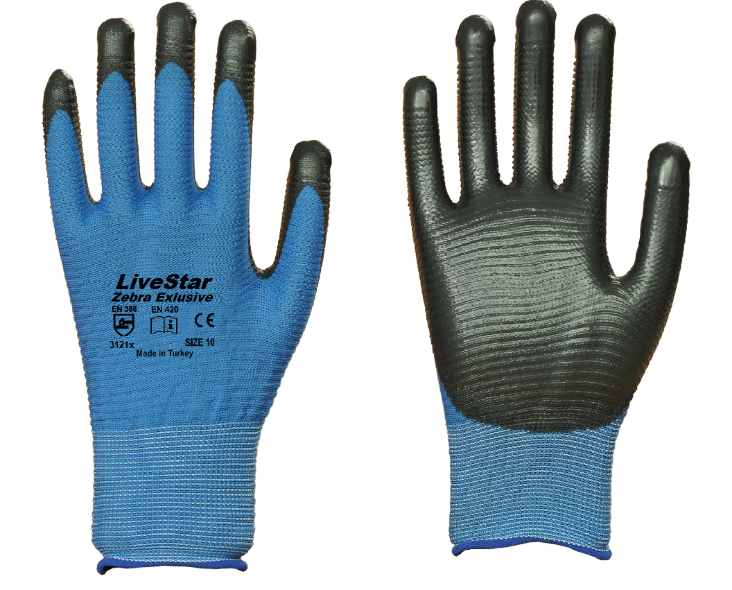 Mavi / Siyah Nitril Kaplamalı Marka = LiveStar - Beybi Pn3 Zebra