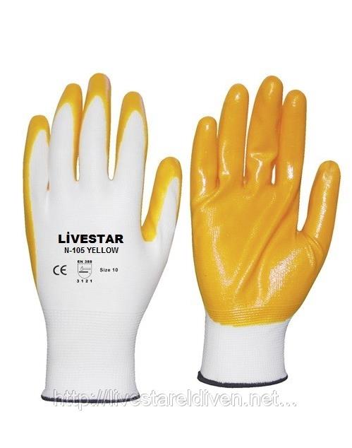 **Yerli Üretim LiveStar İş Eldivenleri - Sarı Nitril Kaplama İş Eldiveni - Zebra Desenli Nitril İşçi Eldivenleri